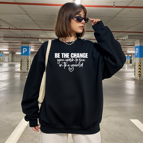 Hanorac de dama oversize cu mesaj BE THE CHANGE