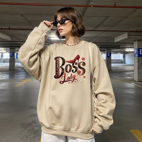 Hanorac de dama oversize cu mesaj BOSS LADY