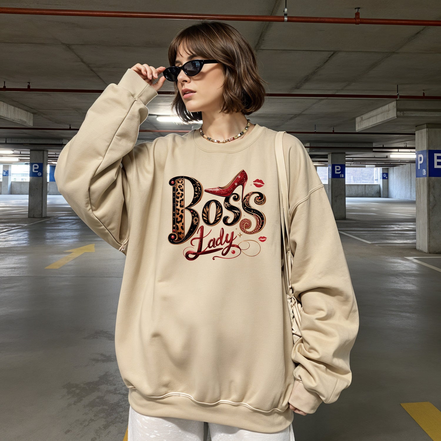 DESCRIERE Hanorac de dama oversize cu mesaj BOSS LADY