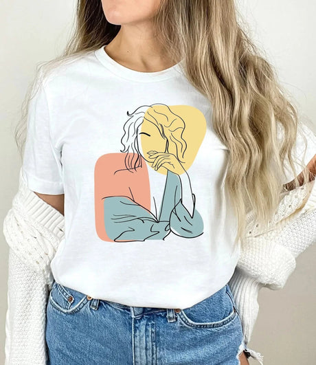 Tricou dama oversize din bumbac 100% Minimalist cu imprimeu ABSTRACT