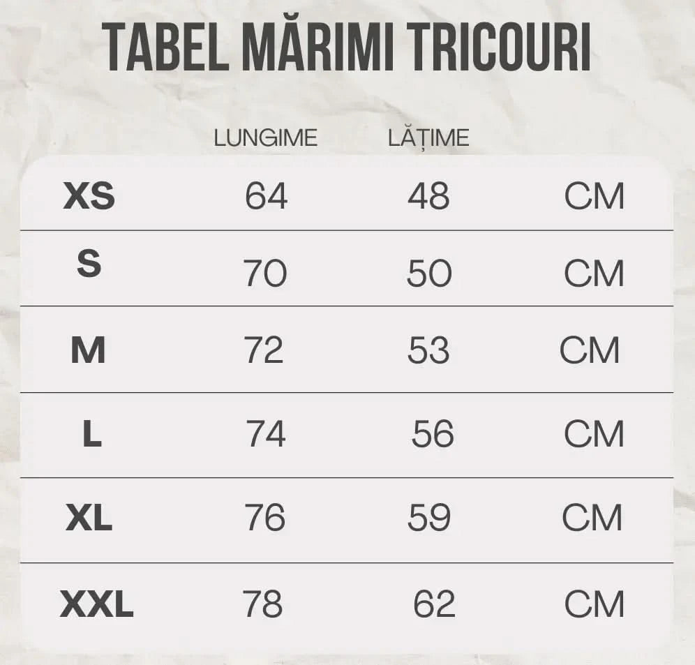 ℹ️ Tricou regular fit, mărime europeană. Alege mărimea pe care o porți de obicei.
