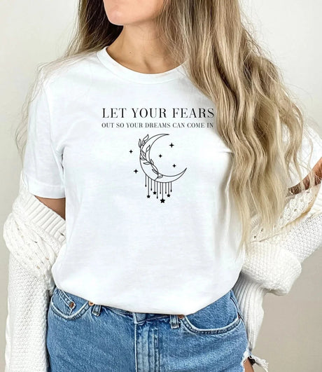 Preț normal 69 leiPreț unitar /IndisponibilTricou de dama oversize din bumbac 100% cu mesaj LET YOUR FEARS