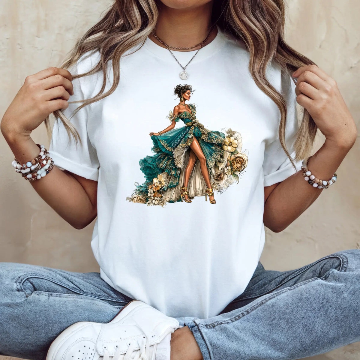 Tricou dama oversize din bumbac 100% Fashion cu imprimeu GREEN DRESS - XS / ALB is backordered and will ship as soon as it is back in stock.