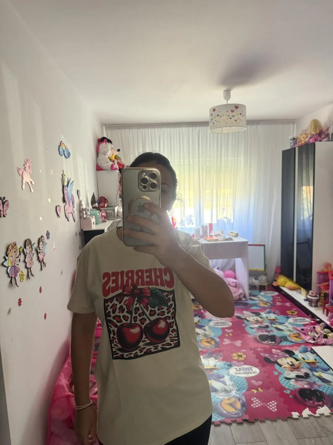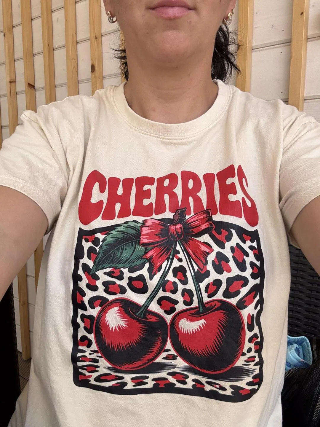 Tricou dama oversize din bumbac 100% de Vara cu imprimeu CHERRIES - S / CREM is backordered and will ship as soon as it is back in stock.